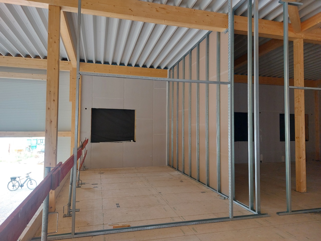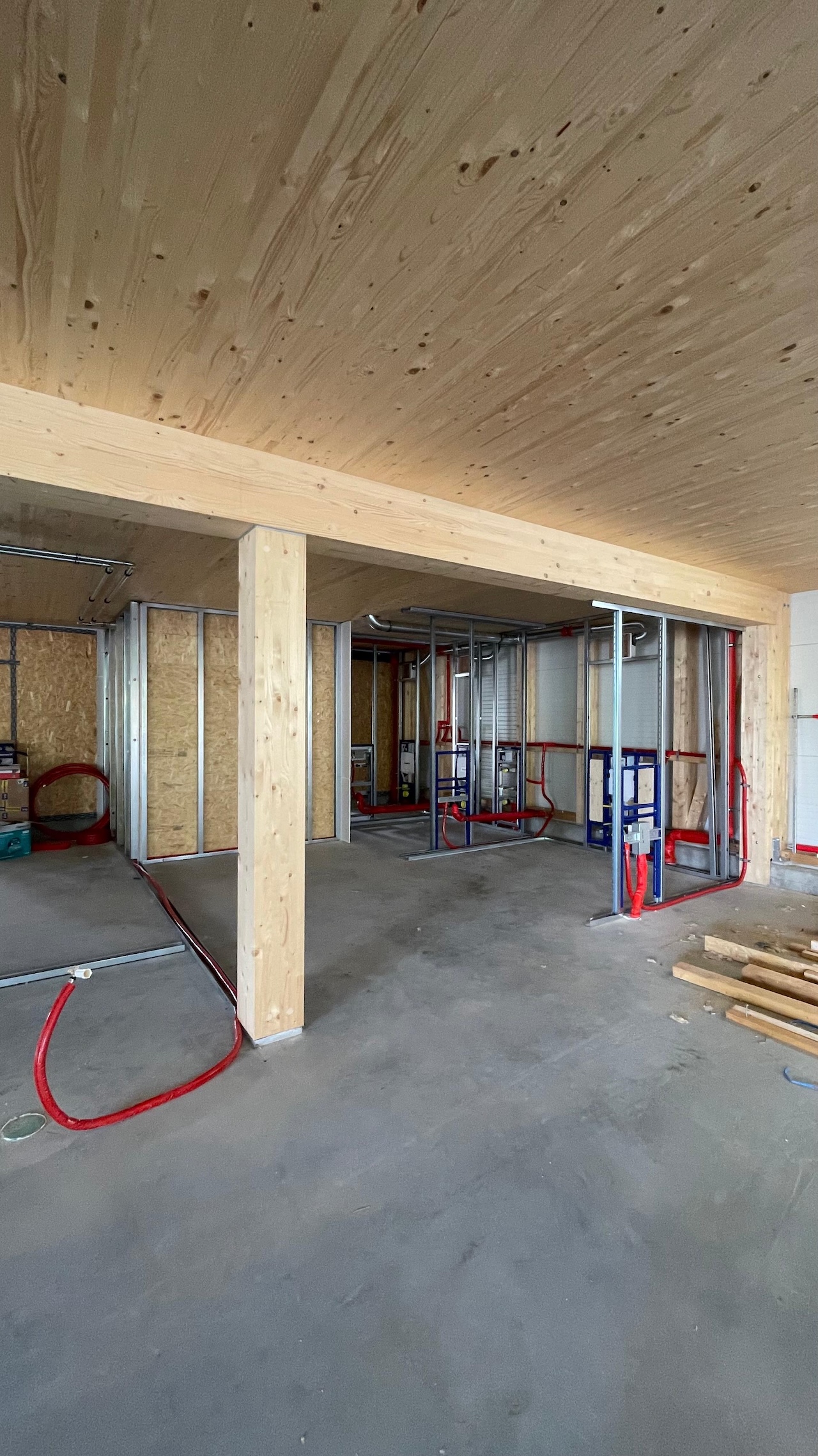 Nachdem der Holzrahmen steht und Dach sowie Außenwände montiert sind, widmen wir uns nun dem Herzstück unseres Projekts – dem Innenleben. Erste Trennwände sind bereits gesetzt, Räume nehmen Form an und man spürt schon, wie aus dem Rohbau ein Ort zum Wohlfühlen wird.